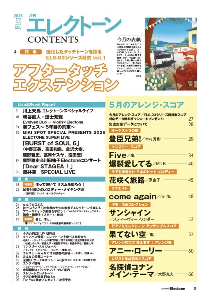 「月刊エレクトーン」5月号(4月20日発売)に、3月20日のスガナミ楽器西明石店でのライブの模様が掲載されます。